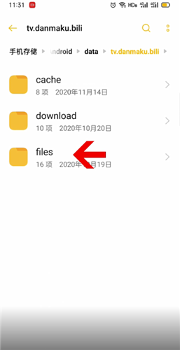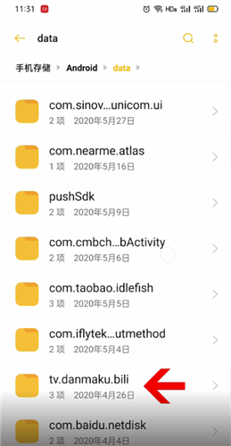 3、然后找到并點(diǎn)擊tv.danmaku.bil文件夾。