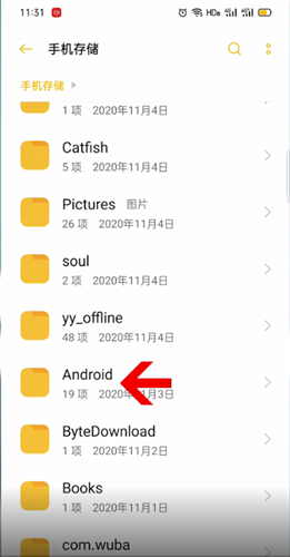 1、首先,打開手機(jī)中的文件管理器,找到并進(jìn)入Android文件夾。