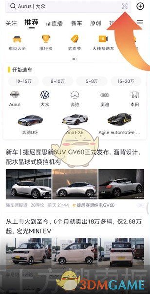 1、首先打開懂車帝App,點擊首頁上方搜索框旁邊的“識車”圖標;