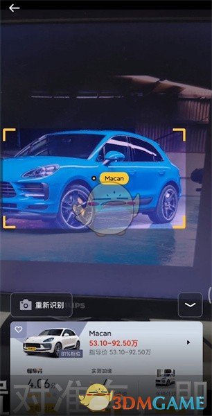 3、將手機的后置攝像頭對準車輛,App即可完成車型識別。