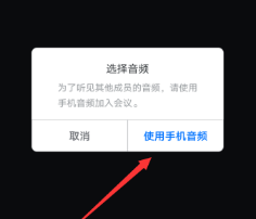 6、在彈出的選項框中,點擊“使用手機(jī)音頻”。