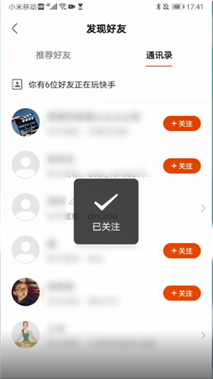 2、你可以選擇添加系統(tǒng)推薦的好友,或者點(diǎn)擊“通訊錄”選項(xiàng),直接添加通訊錄里的快手好友。