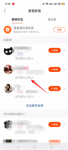 5、然后就可以看到“你可能認(rèn)識(shí)的人”推薦列表了。