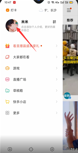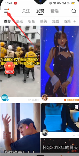 2、首先打開快手APP,點(diǎn)擊左上角的菜單按鈕(三條橫線)。
