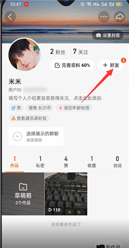 4、在頭像旁邊,點(diǎn)擊“+好友”選項(xiàng)。