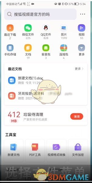 1、首先打開(kāi)手機(jī)QQ瀏覽器,進(jìn)入文件菜單。