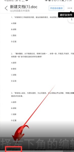 3、接著點(diǎn)擊左下角的編輯文檔按鈕,進(jìn)入編輯模式。