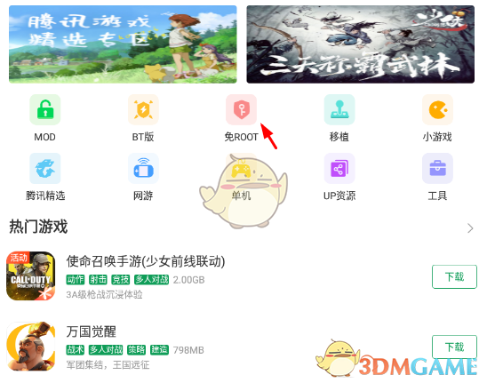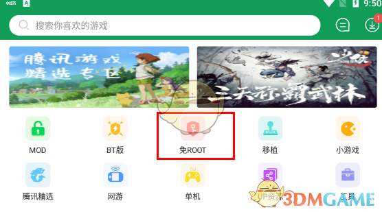 1、首先啟動(dòng)7723游戲盒,在主界面上,您可以清晰地看到導(dǎo)航欄的【免root】選項(xiàng)。