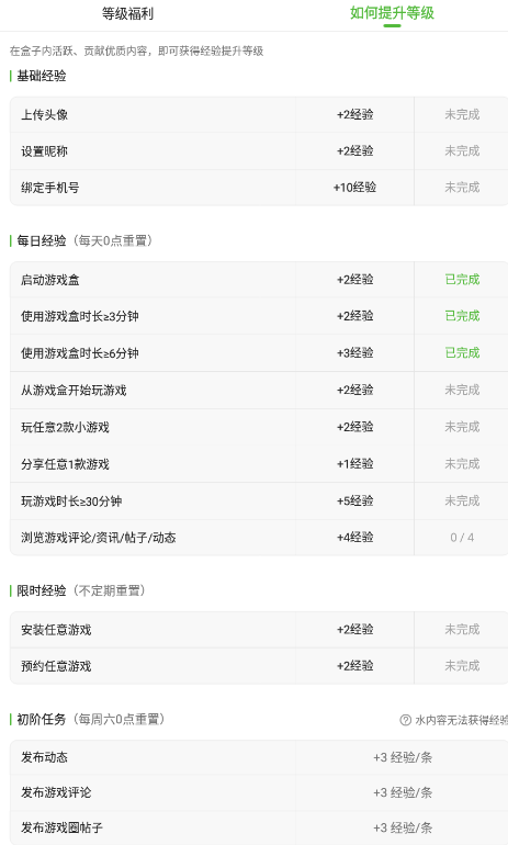 1、在4399游戲盒中,提升等級的途徑有很多種,主要的經(jīng)驗獲取方式包括:基礎(chǔ)經(jīng)驗、每日經(jīng)驗和任務(wù)經(jīng)驗等。通過完成這些任務(wù),玩家能夠獲得一定的經(jīng)驗值,從而推動等級提升。具體操作請參考下圖: