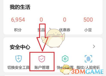 2、進(jìn)入農(nóng)行應(yīng)用頁面,依次點(diǎn)擊【我的】-【賬戶管理】,如下圖所示。