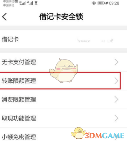 4、進(jìn)入選定賬戶的安全鎖設(shè)置頁面,選擇【轉(zhuǎn)賬限額管理】選項(xiàng),如下圖所示。