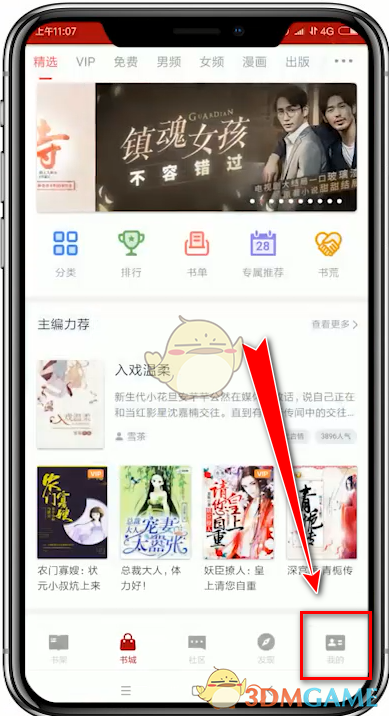 1、首先,打開追書神器app,點(diǎn)擊右下角的【我的】選項(xiàng);