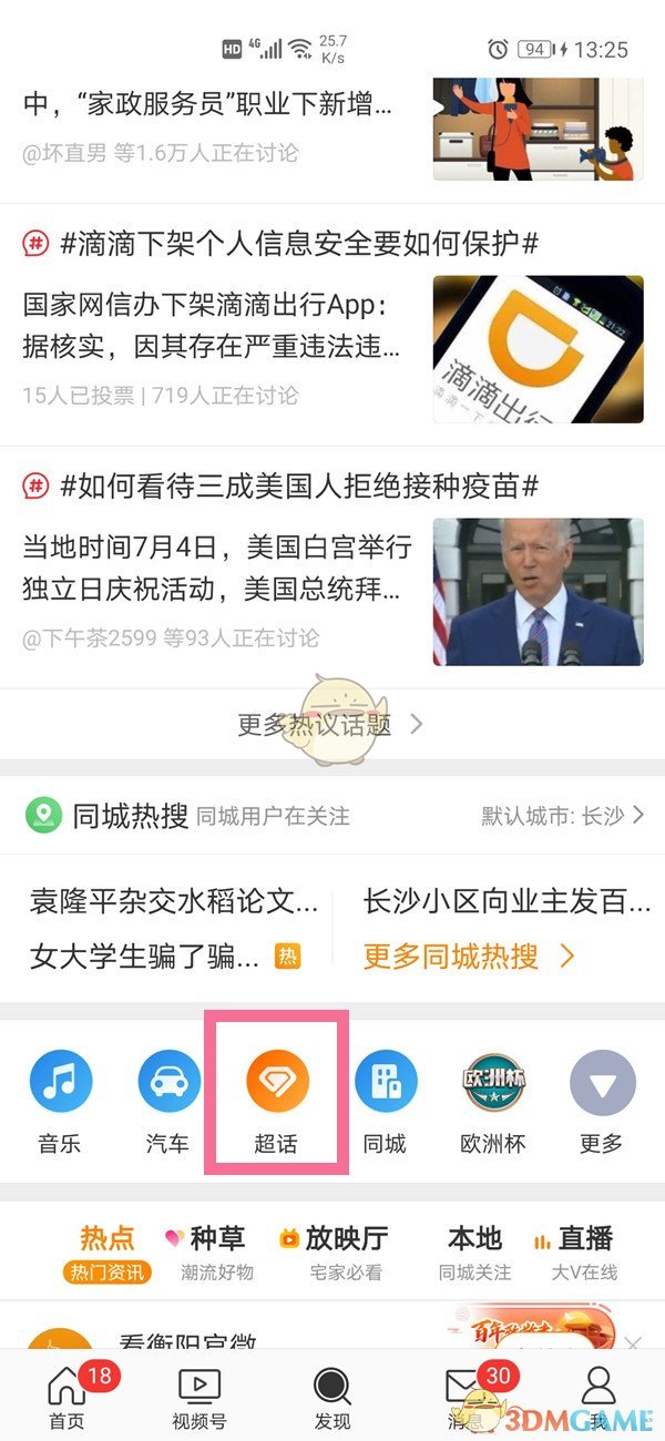 1、首先進入微博的“發(fā)現(xiàn)”頁面,點擊【超話】選項。