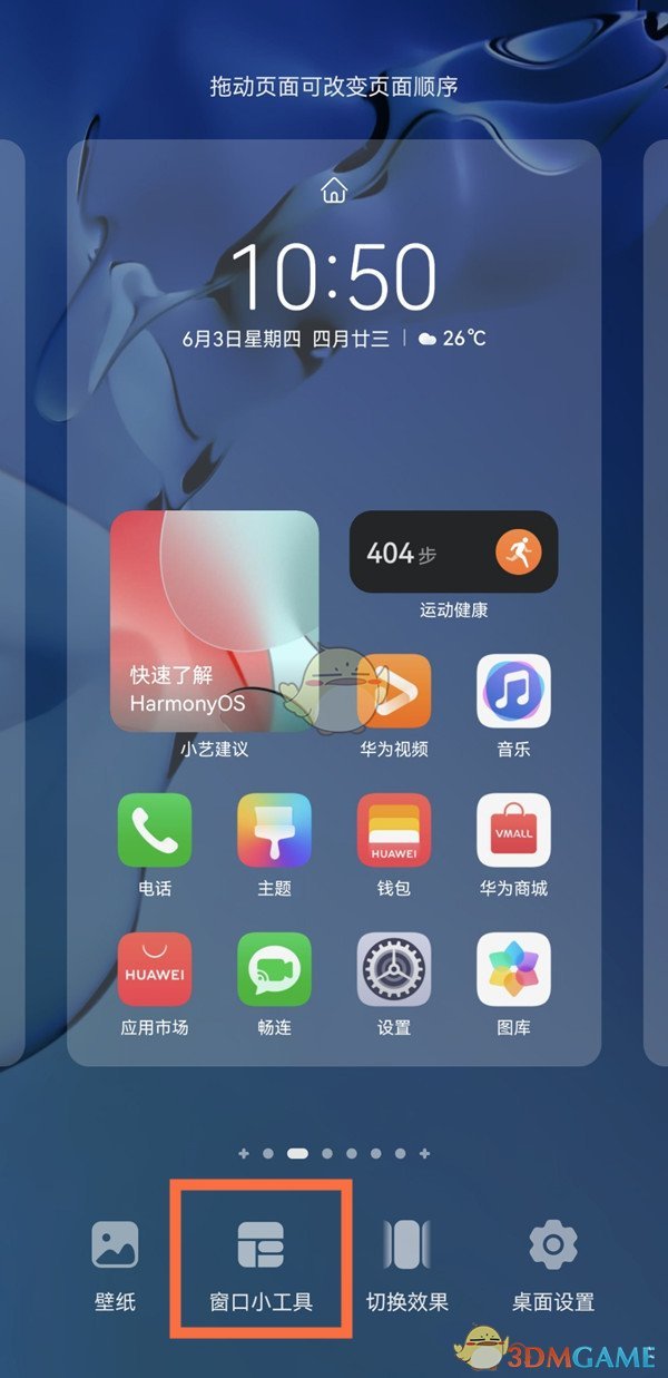 1、首先在手機(jī)主屏幕上使用兩指捏合手勢(shì)進(jìn)入編輯模式,然后點(diǎn)擊【小工具】。