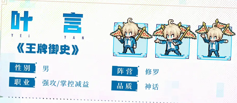 從整體技能組合來看,葉言并不是一個(gè)依賴單體爆發(fā)的角色,而是專注于通過施加多重debuff來打壓敵方輸出。他的掌控能力很強(qiáng),可以有效限制敵人的單體攻擊,同時(shí)“掐心算點(diǎn)”技能讓隊(duì)友能在開局獲得更高輸出。因此,葉言是一位非常適合破壞敵人節(jié)奏的綜合型角色。