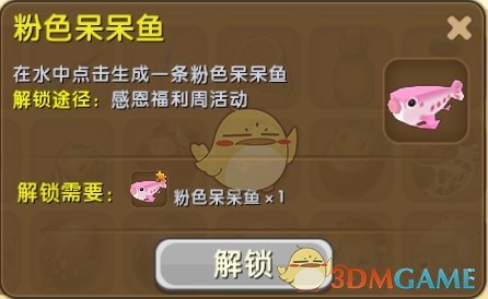 解鎖條件:需要獲得粉色呆呆魚碎片*1。碎片可以通過參與感恩福利周活動來獲得。