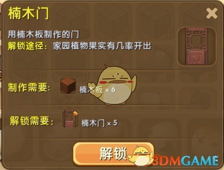 解鎖楠木門的條件是:獲得楠木門碎片*5。楠木門碎片可以通過家園植物的果實(shí)獲得,具有一定的掉落概率。解鎖需要消耗225迷你豆。