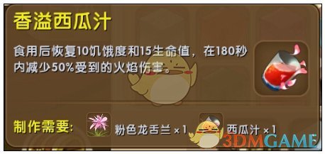 食用后能夠恢復(fù)10點(diǎn)饑餓度和15點(diǎn)生命值,同時(shí)在180秒內(nèi)減少50%的火焰?zhèn)Α?