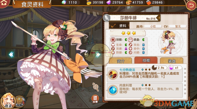 | 雖然沙朗牛排不像宮爆雞丁那樣常見,但它作為一款家常菜式食靈,技能和屬性都能滿足基本需求。作為過渡食靈,前期還是有一定使用價值的,建議大家可以在早期使用,直到解鎖更強大的食靈為止。 | |||