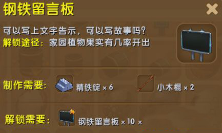 《迷你世界》鋼鐵留言板合成圖鑒