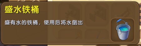 玩家可以使用鐵桶對準水源塊進行操作,從而獲得盛水鐵桶。