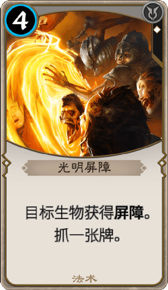 目標(biāo)生物獲得屏障效果。 抽取一張牌。 |