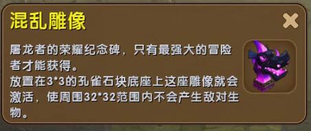 將混亂雕像放置在3X3的孔雀石塊上時(shí),它會(huì)激活特效,使得32X32范圍內(nèi)的敵人無法生成。