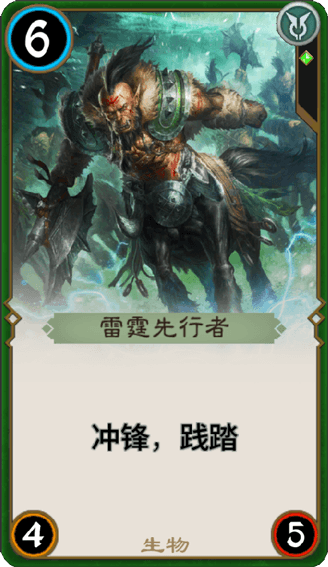 雷霆先行者是半人馬種族中速度極快的一支隊伍,他們的任務就是毫不猶豫地沖向前方,不顧任何等待他們的挑戰(zhàn),只需向前進發(fā)。它是《秘境對決》中的一張綠色生物卡。