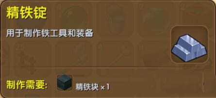 精鐵塊*1(可通過(guò)挖礦獲得),然后將其放入熔煉爐進(jìn)行熔煉即可。