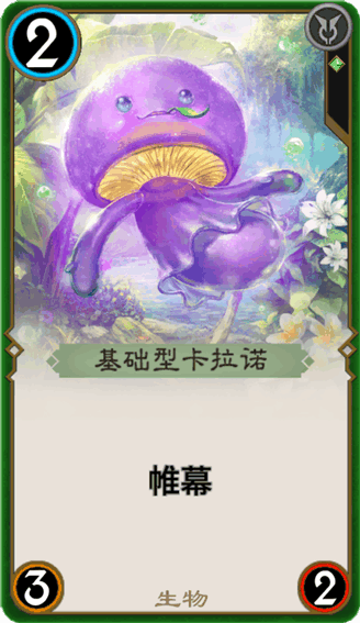 基礎(chǔ)型卡拉諾的危險(xiǎn)等級被評定為黑鐵。盡管這種奇特的生物外形上與蘑菇相似,但它具備自主智慧和活動能力,并且能以多種形態(tài)存在。它是《秘境對決》中的一張綠色生物卡。
