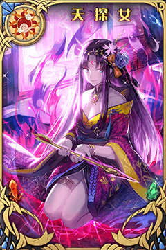 | 技能 | 當天若日子和天探女同時在場時,己方回合開始時,隨機解除敵方兩格迷霧,但我方主神將失去3點生命。當天若日子離場時,天探女也會一同退場。 | ||||||||||