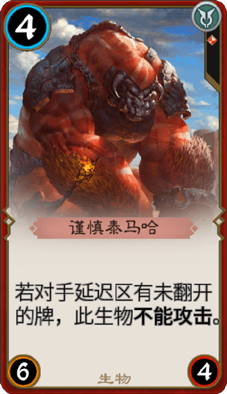 如果對(duì)方延遲區(qū)內(nèi)有未揭示的牌,該生物無法攻擊。 |