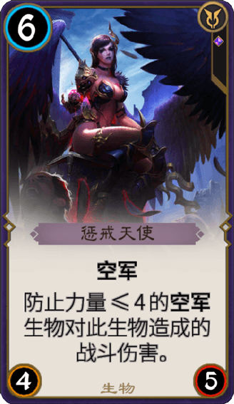 空軍 防止攻擊力≤4的空軍生物對(duì)該生物造成戰(zhàn)斗傷害。 |