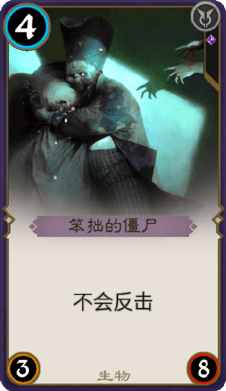 都市中的亡者們最為迷戀的是什么呢?它們的目光或許能揭示一切。這只僵尸,身上帶著一袋金幣,據(jù)說(shuō)它生前是一名放貸人,而它的最終愿望就是死后能與金錢(qián)永遠(yuǎn)相伴??瓷先?,它好像已經(jīng)實(shí)現(xiàn)了愿望。這張卡片是《秘境對(duì)決》中的一張黑色生物卡。