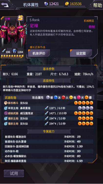 這款恐怖的機械怪物,因其惡名遠揚的傳聞而廣為人知,流傳著它會吞噬操控者的故事。雖然有人認為這只是對駕駛艙無法打開的夸大說法,但無法否認其威懾力。曾經(jīng),尼祿憑借著5星級的近戰(zhàn)表現(xiàn)打遍天下無敵手,然而最近,底盤穩(wěn)定器的調(diào)整讓其投技面臨了更多挑戰(zhàn),導(dǎo)致命中率不如從前,顯得有些不穩(wěn)定。但盡管如此,尼祿依然展現(xiàn)了相當(dāng)出色的戰(zhàn)斗力。
