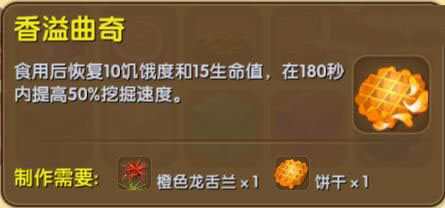香溢曲奇,真正的優(yōu)質(zhì)美味。與之前的香溢系列不同,這一版本的附加效果極為實(shí)用,50%的挖掘速度提升對(duì)于想要在迷你世界中致富、先挖礦的玩家來說無疑是一個(gè)巨大的幫助。帶上你的鐵楸,開始你的冒險(xiǎn)吧!