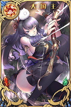 | 大國主具備一定的攻擊力,可以勝任主攻手的角色。盡管她的生命值相對(duì)較低,但她死亡后產(chǎn)生的離恨效果使她在爆發(fā)階段非常強(qiáng)力。即使有負(fù)面效果的攻擊buff,也能毫無顧慮地施加在她身上,利用遺恨進(jìn)行反擊。 | |||||||||||