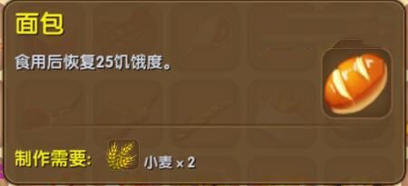 今天給大家?guī)淼氖恰睹阅闶澜纭分械囊豢畛R娛澄铩姘?。制作面包只需要兩顆小麥,而它能為玩家恢復25點饑餓值,是長時間冒險中不可或缺的食物選擇。