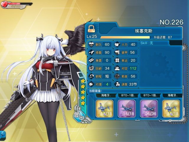 埃塞克斯作為一艘大型航母,經(jīng)歷了大約一年的等待,終于在2016年1月上線,成為了玩家們的期盼之物。她是建造限定艦船,建造時(shí)間為4小時(shí)。游戲內(nèi),她的搭載數(shù)高達(dá)90,僅次于加賀,位居第二;她的艦載機(jī)配置非常均衡,18、18、36、18的分配既考慮了續(xù)航,又保障了開幕攻擊的強(qiáng)力。此外,60血的中破保護(hù)、高閃避和較強(qiáng)的對(duì)空能力,也大大提升了她的生存能力??傮w而言,埃塞克斯是一艘無論從屬性還是歷史背景來看都值得五星推薦的航母。在沒有開放改造的情況下,她已經(jīng)是一位強(qiáng)力的主力艦船了。而如果要排進(jìn)航母前五,恐怕沒人會(huì)有異議吧!對(duì)于那些新手指揮官,能夠入手埃塞克斯后,建議將她作為主力航母進(jìn)行培養(yǎng)。