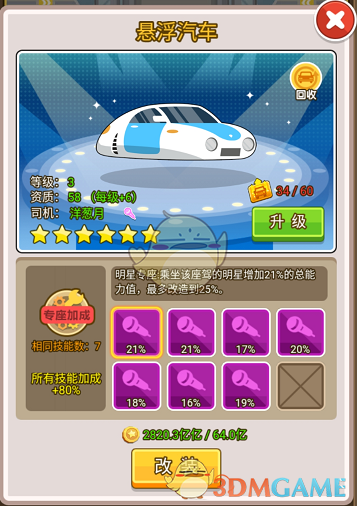 車輛的屬性只能在與人才匹配時才會真正提高人才的能力,而車輛星級越高,所能提供的屬性也就越多。從一星車的兩個屬性到七星車的八個屬性,不同星級的車輛會帶來不同的增益。