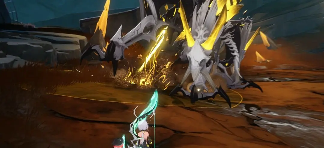 當(dāng)旋轉(zhuǎn)結(jié)束時(shí),嗜晶者會(huì)進(jìn)行震地攻擊。