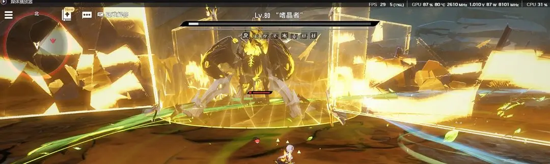 狂暴狀態(tài)下,四條光幕不斷旋轉(zhuǎn),嗜晶者將持續(xù)釋放晶體進(jìn)行攻擊。