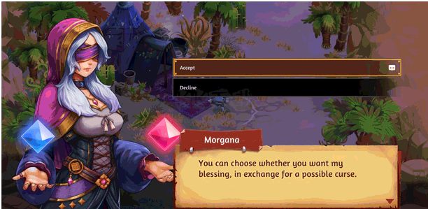 探索程序生成的領(lǐng)域,遇到獨(dú)特的NPC。與阿薩姆達(dá)達(dá)成交易,接受潘笛的挑戰(zhàn),并收下莫甘娜的“贈禮”。