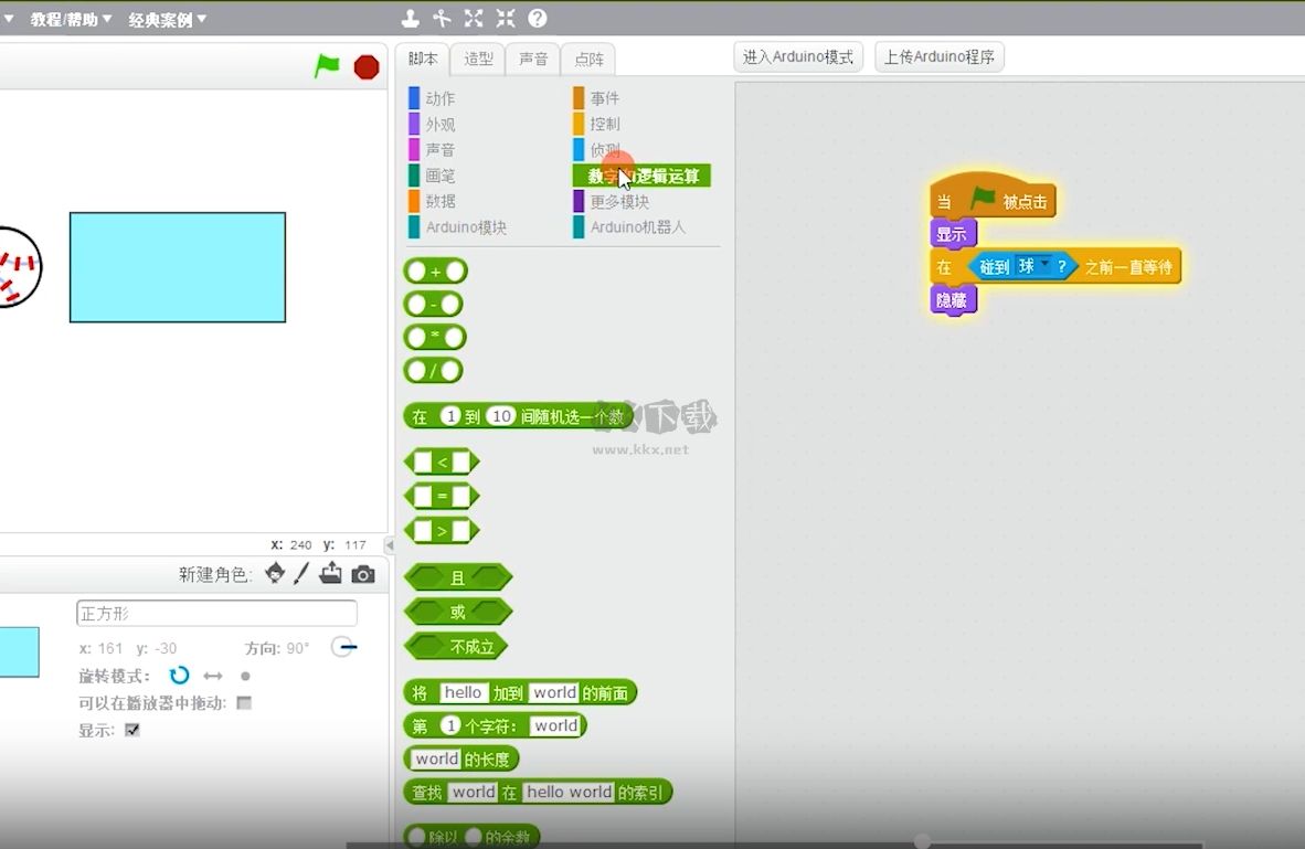 2、程序的命令和參數(shù)通過(guò)積木形狀的模塊來(lái)完成。