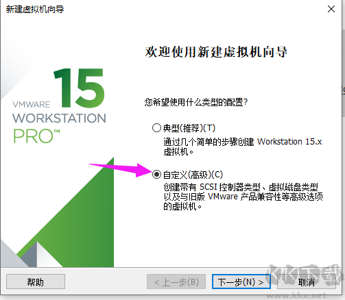 1、新建虛擬機(使用自定義方式),點擊“下一步”,然后選擇所需的虛擬機版本,再點擊“下一步”;