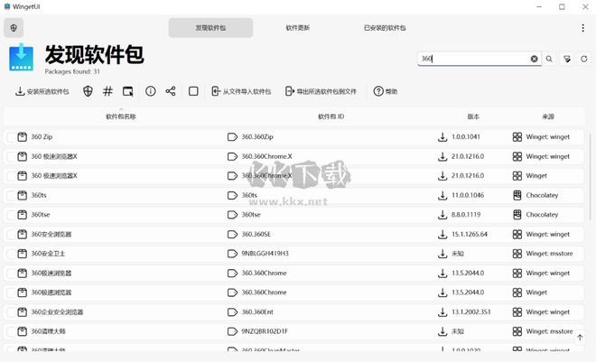 支持多種軟件包管理器:可以安裝、更新和卸載Winget、Scoop及Chocolatey的軟件包。