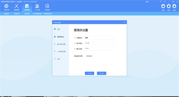 8、輸入管理員或開票人姓名,設置密碼,點擊下一步。