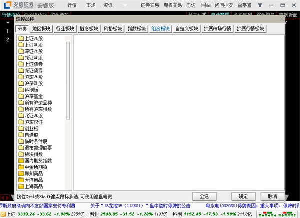 2、選擇符合需求的品種板塊,如地區(qū)板塊、組合板塊、自定義板塊等。