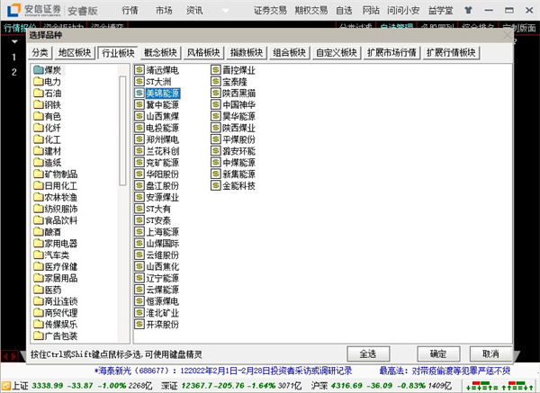 3、以行業(yè)板塊為例,選擇煤炭行業(yè)后,挑選感興趣的股票公司。