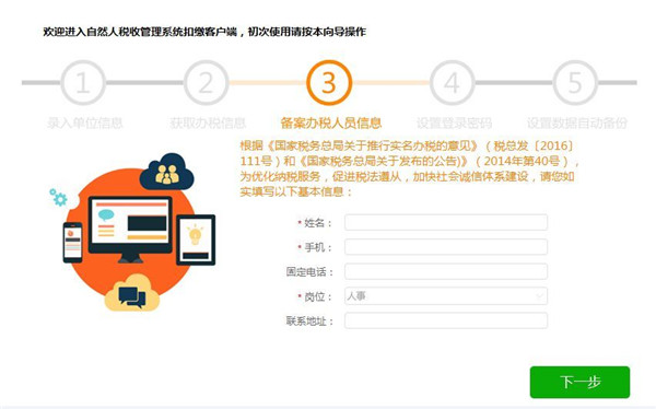 此步驟需對辦稅人員信息進(jìn)行備案,請真實(shí)填寫相關(guān)信息。